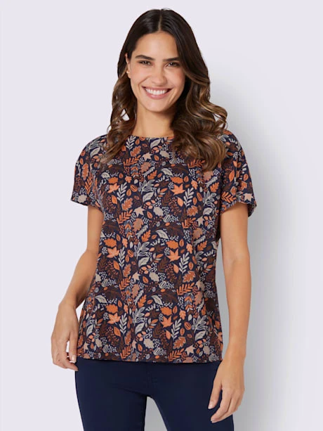 Glissez-vous dedans ! Chemisier à manches courtes en viscose douce et fluide avec joli motif imprimé. Encolure en U et mancherons.