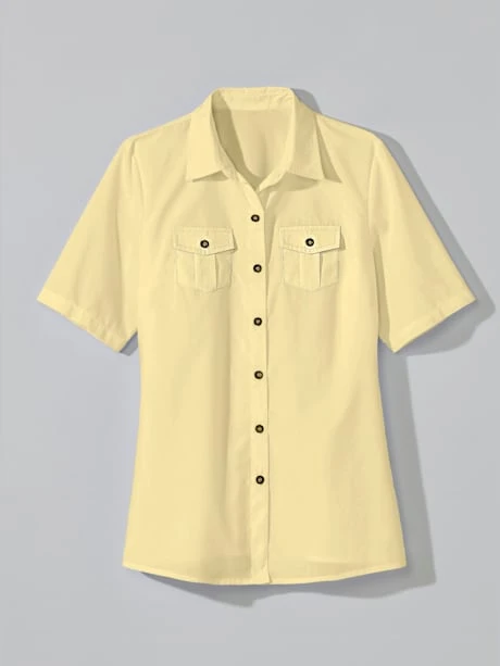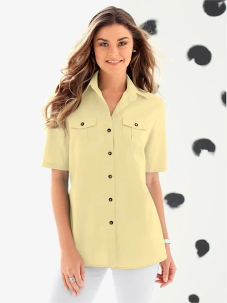 Chemisier en qualité agréablement légère. Col chemise, patte de boutonnage sur toute la longueur et 2 poches poitrine plaquées à rabat.