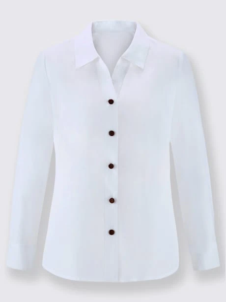 Indispensable dans chaque garde-robe ! Chemisier facile à assortir. Col chemise, petit V, manches longues à manchettes boutonnées. Jolis boutons contrastés. Pinces poitrine et patte aux épaules au dos pour une coupe parfaite, pli creux au dos pour une grande liberté de mouvement. Ourlet droit. Entretien facile et repassage superflu grâce au traitement Easy Care.