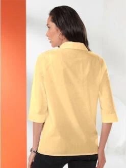 Chemisier ultra-doux aux détails tendance : col à revers flatteur, manches courtes tendance et fentes latérales à l’ourlet. Boutons imitation corne sur la patte de boutonnage et les 2 poches poitrine plaquées. Empiècement et pli creux au dos.