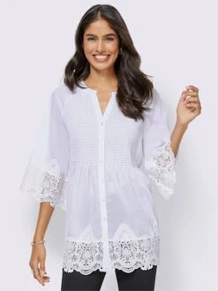 Chemisier En Dentelle Fente Délicate Aux Manches Et à L’ourlet