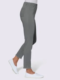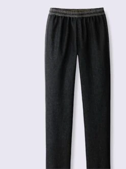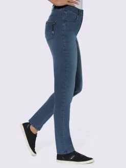Confortable, mode et simple : jean décontracté indispensable dans votre dressing. Délavage tendance. Broderie florale bicolore à l’ourlet. Ceinture élastique latérale avec passants et fermeture à glissière et bouton. 4 poches. Empiècement pour une coupe parfaite ! Largeur pieds env. 32 cm.