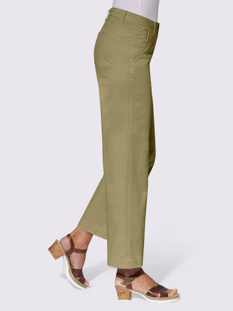 Simple et facile à associer : cette jupe-culotte est un incontournable. Ceinture fixe et passants, fermeture à glissière et bouton. 4 poches. Largeur pieds env. 50 cm.