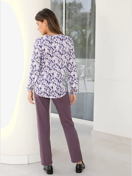 Jean extensible confortable. Grâce à sa ceinture élastique latérale et à sa qualité extensible, il est confortable et bien coupé ! Glissière et bouton. Passants. Poches avec rivets décoratifs discrets.