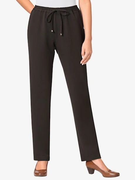 Pantalon à la coupe bien-être. Vous ne pourrez plus vous en séparer ! Ceinture élastique, lien à nouer, 2 poches devant et petite fente à l`ourlet.