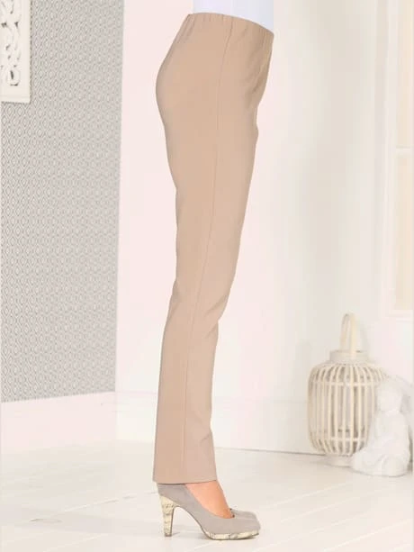 Pantalon doté d`une ceinture élastique intérieure « invisible ». Qualité extensible facile d`entretien : ajustement parfait, sans serrer ! Largeur pieds env. 36 cm.