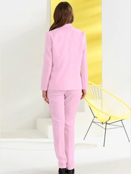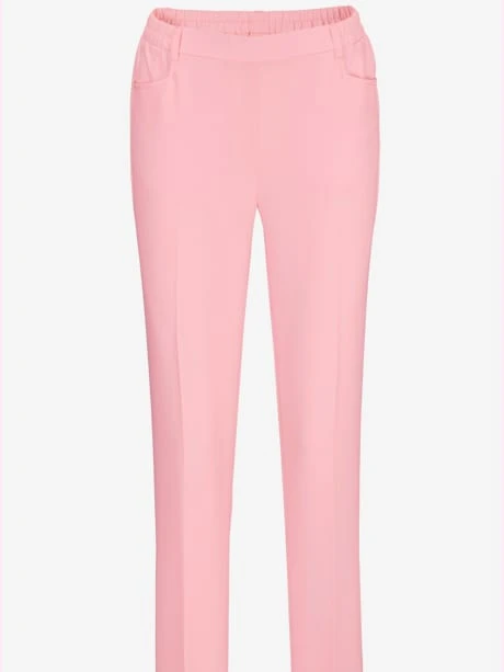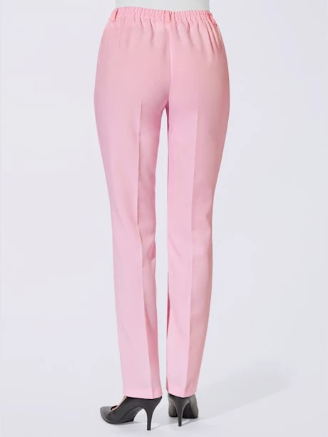 Élégance, entretien facile : Pantalon à ceinture élastique et patte lisse devant, passants et 2 poches devant. Plis repassés pour des jambes affinées.
