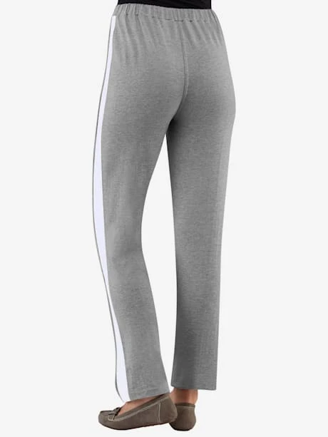 Nouveaux modèles bien-être avec un petit je-ne-sais-quoi ! Petites pierres fantaisie aux poches devant, rayures blanches aux coutures latérales. Ceinture élastique.