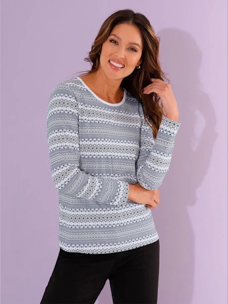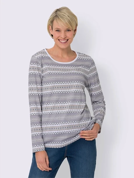 T-shirt à manches longues agréable à porter au motif norvégien. Encolure ronde.
