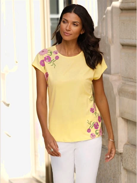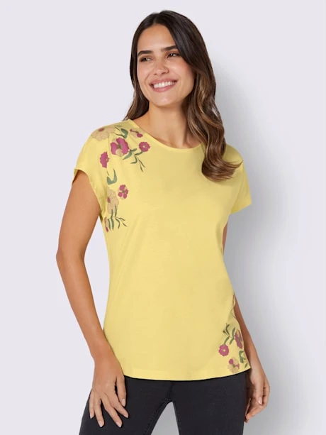 T-shirt à manches courtes agréable à porter avec imprimé floral devant. Coupe moderne avec encolure ronde et mancherons.