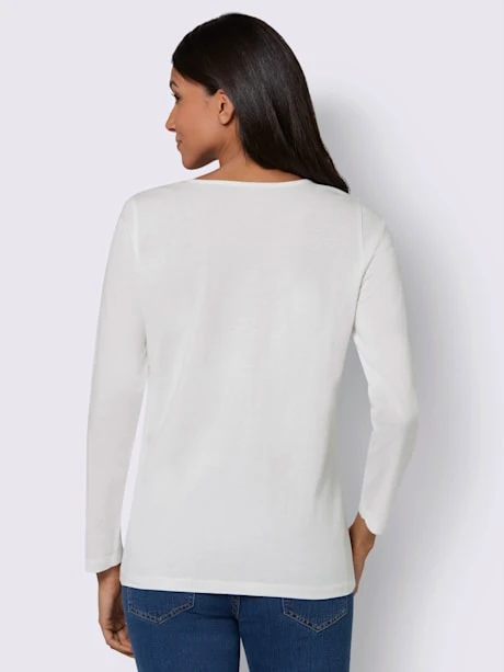 Facile à assortir et agréable à porter – T-shirt avec imprimé devant. Encolure ronde et manches longues.